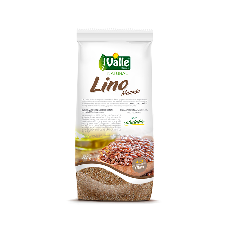 De sabor más suave que el lino dorado, las semillas de lino marrón poseen gran popularidad, ya que su alto contenido en fibras solubles, ayudan a la pérdida de grasa corporal por lo que suelen estar presentes en dietas de adelgazamiento. Esta fibra es beneficiosa para aquellas personas que padecen de estreñimiento.